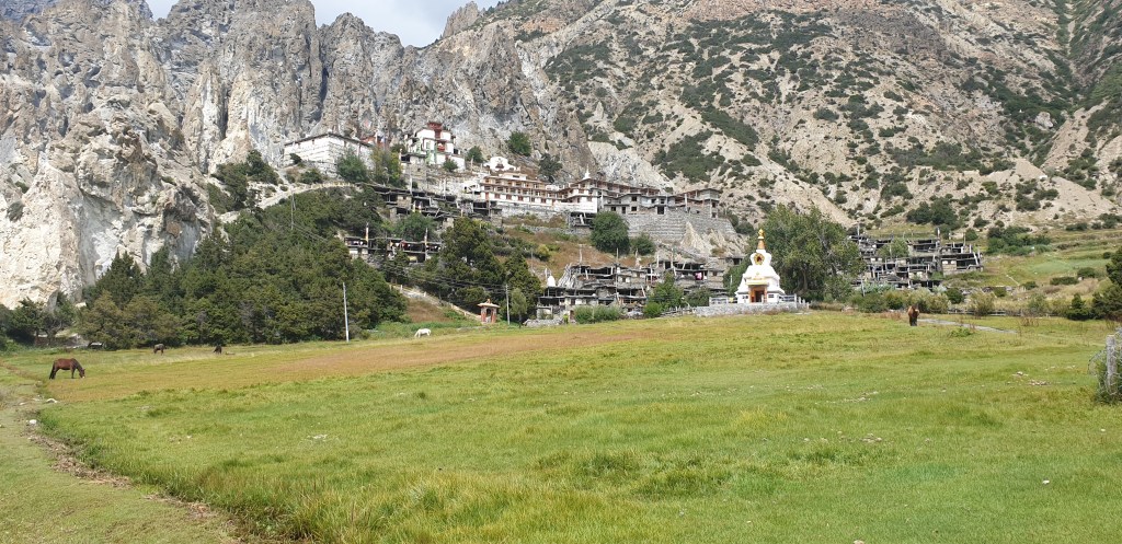 Arrived in Lower Pisang (3250m) around 15:00. Dropped my gear at the tearoom – much nicer than last night – then we headed up to see the monastery in Upper Pisang. Nightmarish interlude of endless concrete steps aside, it was a fun sojourn, and should hopefully help acclimatise me to the altitude.
