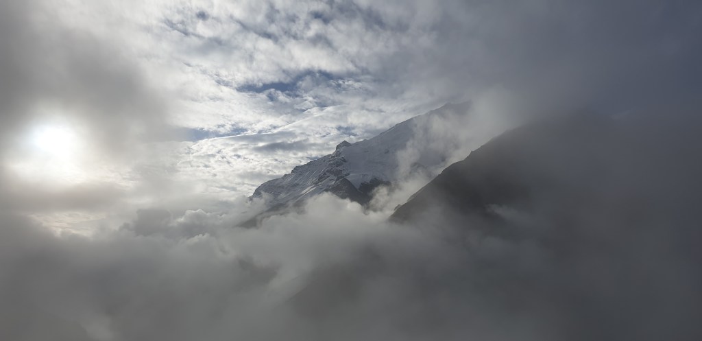 On the final approach to Phedi, a rescue helicopter flew up past us, then back down the valley after a few short minutes. The cause became clear as we arrived in the village (more a collection of shacks): A trekker has been struck with acute mountain sickness and the weather is deteriorating to the point where the pilot had to take off again almost immediately, the bad weather at their heels as they flew back down to the hospital in Manang.