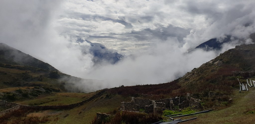 On the other trekking days, despite my trying to concentrate on the scenery, my thoughts had wandered to topics like Pitbull having the gall to sample Africa by Toto, or how quickly Sherlock became terrible schlock. Now, though, I couldn’t concentrate on the view for the simple reason that I had to force myself to breathe steadily and concentrate on putting on foot in front of the other. Should definitely have taken an acclimatisation day. I was unfit, unprepared, and unable to breathe.