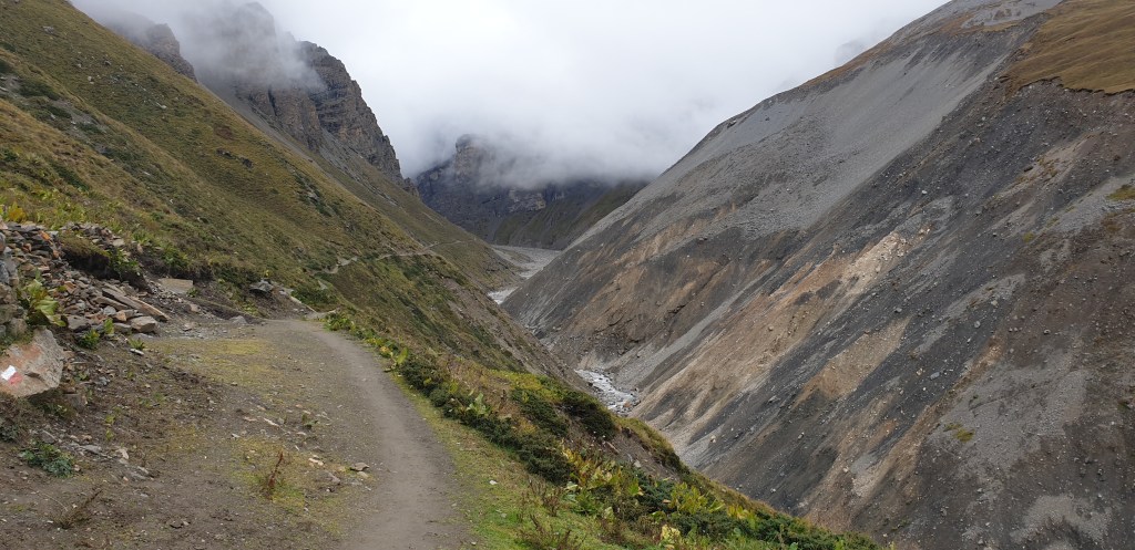 Woken at 05:00 by clomping on the thin floor above me. This goes on for so long that all reasonable explanations evaporate and I make a note to google ‘German pacing fetish’ when I get home. After more garlic soup we leave the teahouse at 06:00 with the goal of teaching Tilicho Lake by 09:30ish. Today is to be the first properly long day’s trekking, almost 9 hours all told.
