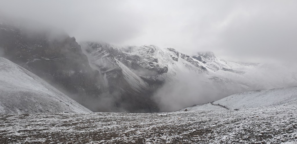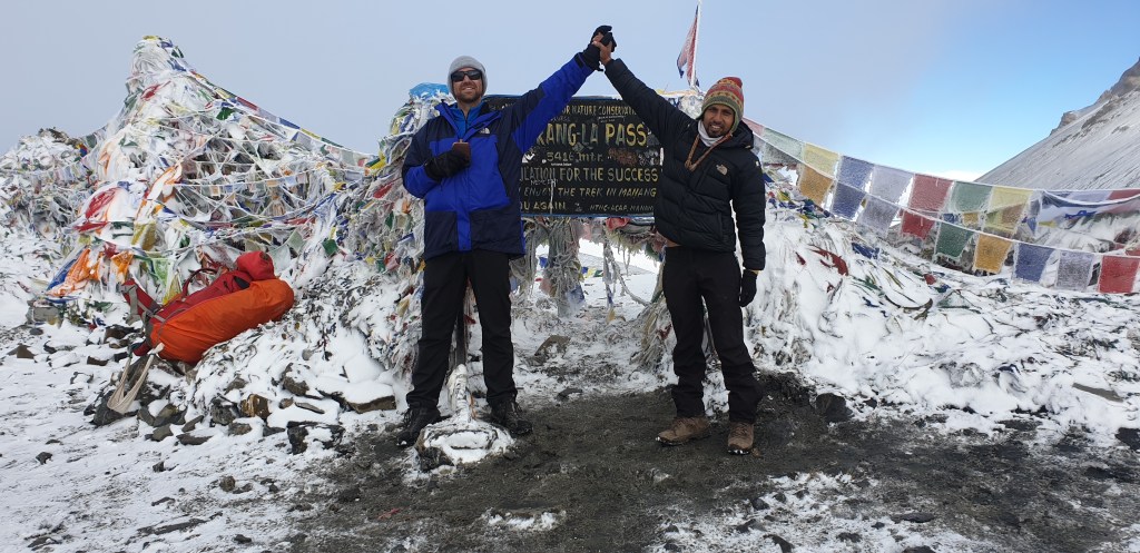 Prayer flags wrapped the sign like a spiderweb, and there were visible paths up to the peaks on either side of us. I recovered gradually, and joked to Sujan that I was going to quickly climb one for a photo, to his bemused horror. It wasn’t until we’d set off down the other side of the Pass that I felt any elation.