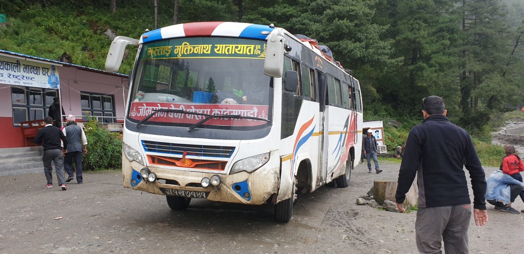 Sujan seems to have a habit of picking the very furthest possible destination within towns, and so while it was technically true that Muktinath was “40 minutes away at the maximum”, it was closer to 80 mins before we reached the bus and jeep stand at the far end of town. Here I was folded into the back of a shared jeep, sharing a space about the size of the inside of a portaloo with two other men, and we departed from Jomsom.