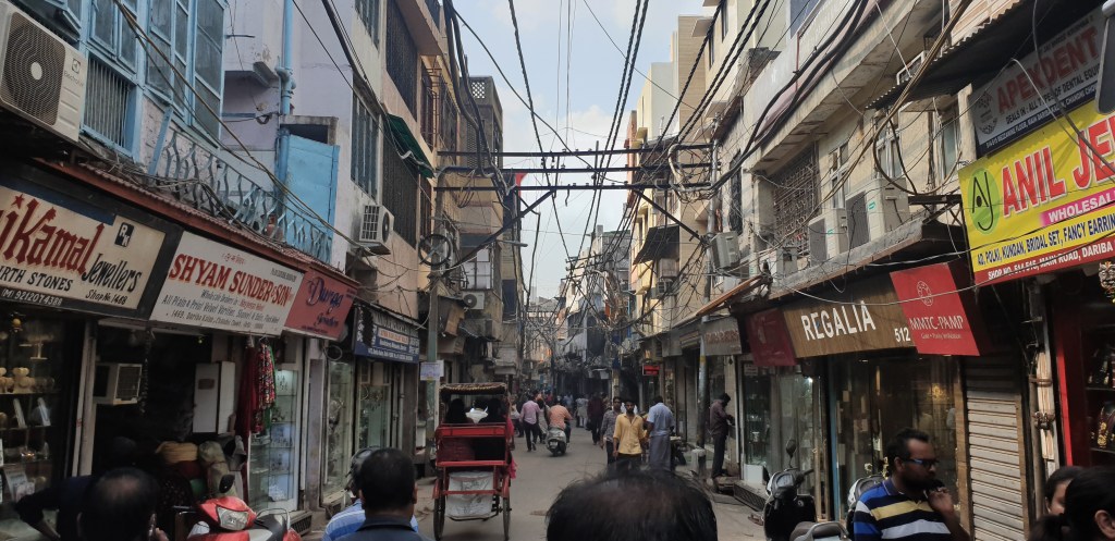 So my first experience of Delhi was tainted by those first few hours, all day. It wasn’t helped by the trip the guide they’d booked for my two days in the city – Bhupi – immediately collected me from the hotel and took me to Old Delhi on a sightseeing tour. He put me on a rickshaw, the driver of which took me through the old markets, crowded and with exposed wires dangling into the streets, and onto several ‘stops’, most of which were clearly just shops for which he gets commission for every tourist he brings, and which were fairly aggressive in their sales tactics. The Jain temple and the Red Fort – for which I was only allotted 10 minutes of time compared to 20 minutes or so per shop – were beautiful, but overall it was an unpleasant experience.